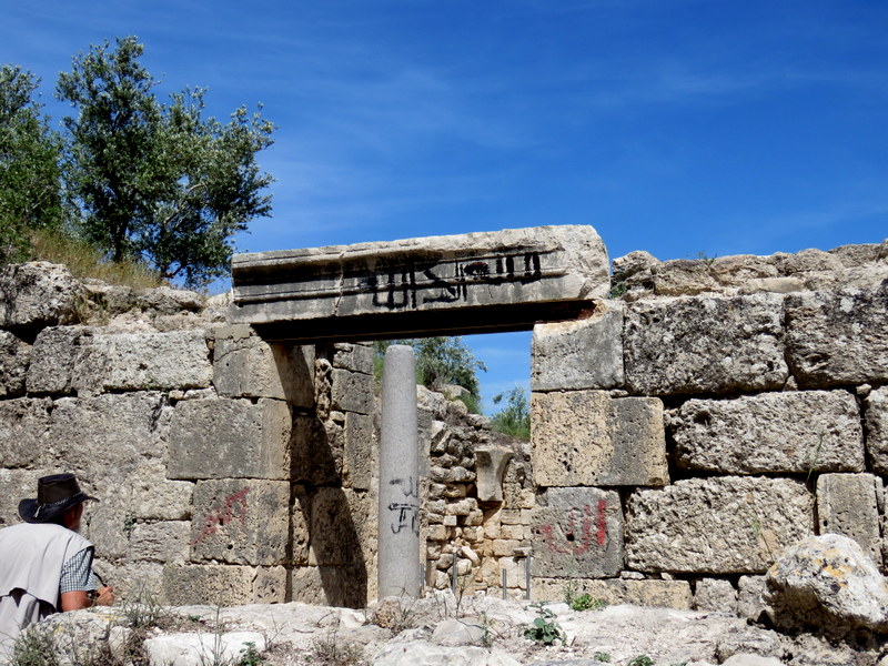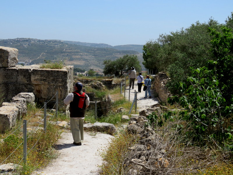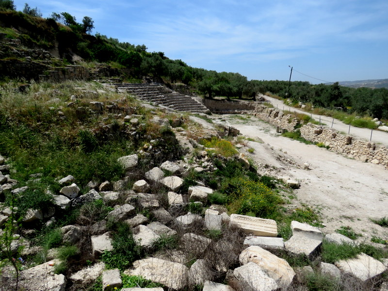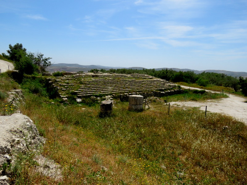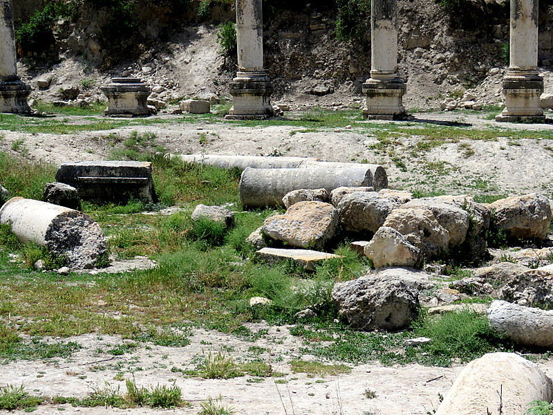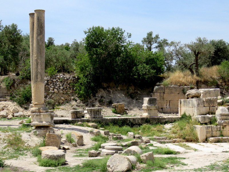 По современным ступенькам можно подняться к основанию храма, с огромными каменными основаниями для колонн, сооруженного Иродом в честь Августа, Ирод построил его на фундаменте дворца Ахава. Есть версия, что именно здесь царь Ирод Антипа отмечал свой 50-летний юбилей.