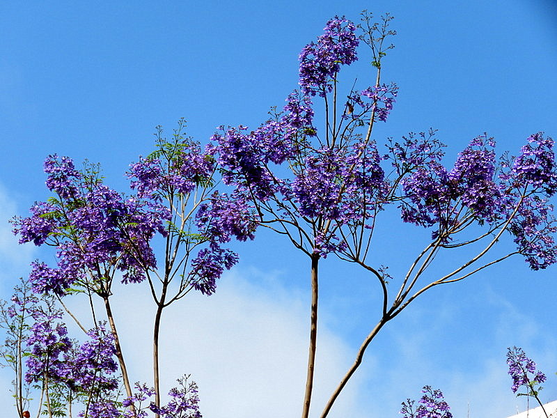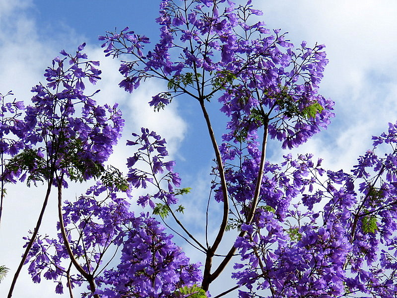 May. 3rd, 2016 09:30 amЖакаранда мимозолистная (Jacaranda mimosifolia) - так называется это дерево, дарящее при цветении красоту сиреневого облака из пышных колокольчиков. Цветущие деревья словно окутывают улицы прозрачной сизой дымкой, а под ногами выстилают фиолетовый ковер. Цветение жакаранды - волшебная пора!