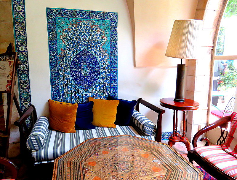 Добавим к этому художественный дизайн: ковры, керамика, витрины с археологическими находками в коридорах, расписные деревянные потолки, инкрустированная мебель... Удобно останавливаться в гостинице еще и потому, что, помимо множества развлечений в Иерусалиме, по соседству — два музея, которые непременно стоит посетить: музей Палестинского наследия и археологический музей Рокфеллера.