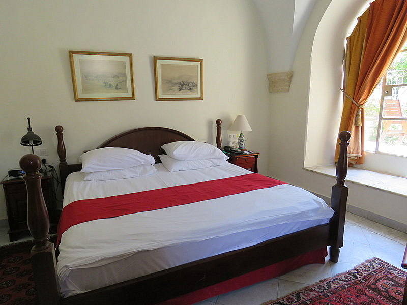 Паре обходится номер, в зависимости от сезона,1200-1500 шекелей за ночь (в эту стоимость входит завтрак по принципу "шведский стол"). Завтракать принято во внутреннем дворе, в саду, которой источает аромат пышного цветения, где журчит фонтан, и где в бассейне плещутся рыбки.