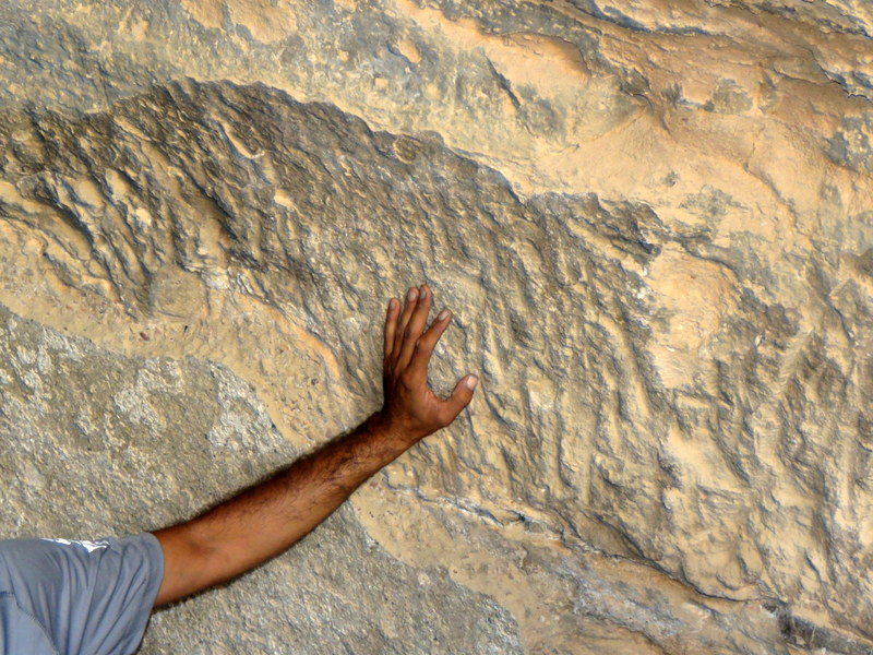 "Царапины" на камне - это автограф из давних эпох: по желобкам вода экономно стекает.