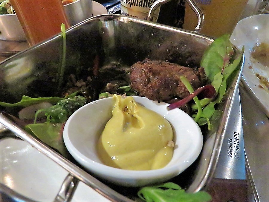 В «Пивном саду» в Тель-Авиве присутствуют лучшие друзья немецкого пива – колбаски, бекон, копчености и прочие мясные изделия из говядины.