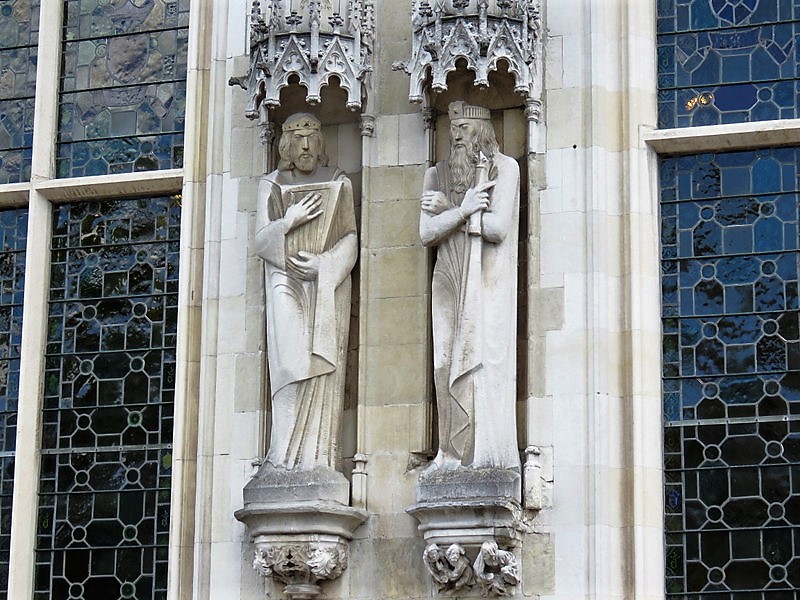 Над фронтоном стоит на страже позолоченная статуя Юстиции, так как вплоть до 80-х годов XIX века в этом здании располагался суд. Также здание украшают бронзовые скульптуры Моисея, Аарона.