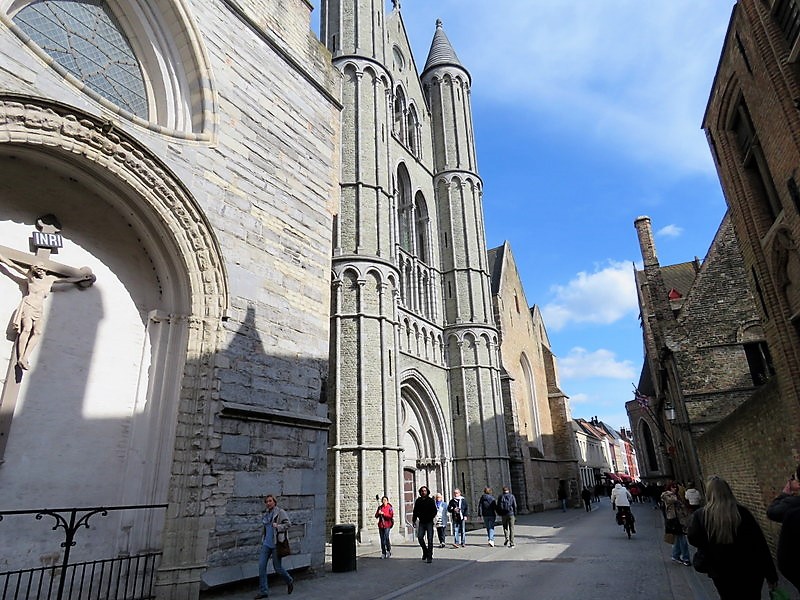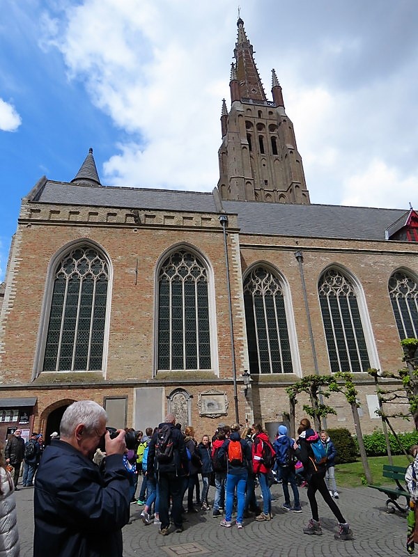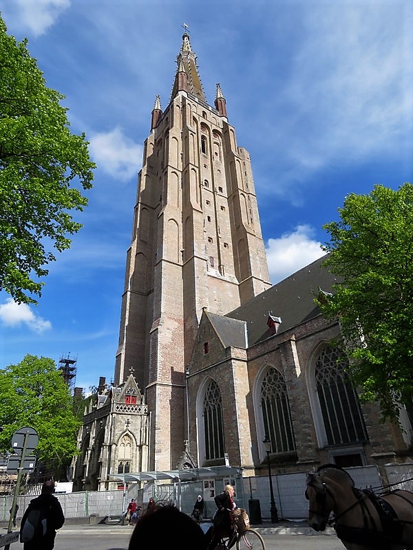 Самое высокое здание в Брюгге (башня 122 метров высотой), основание которого было заложено в XIII веке. В соборе находится «Мадонна Брюгге» — единственная работа Микеланджело, перевезенная во Фландрию при жизни автора.