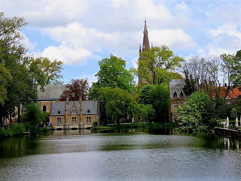 Вокруг резных, словно игрушечных, домиков и великолепных каналов вьются улочки, приводя замечтавшихся прохожих к удивительно прекрасному озеру Любви, или озеру Минневатер (Minnewater), вокруг которого раскинулся романтический парк. Эти места не могли обойтись без романтической истории любви…