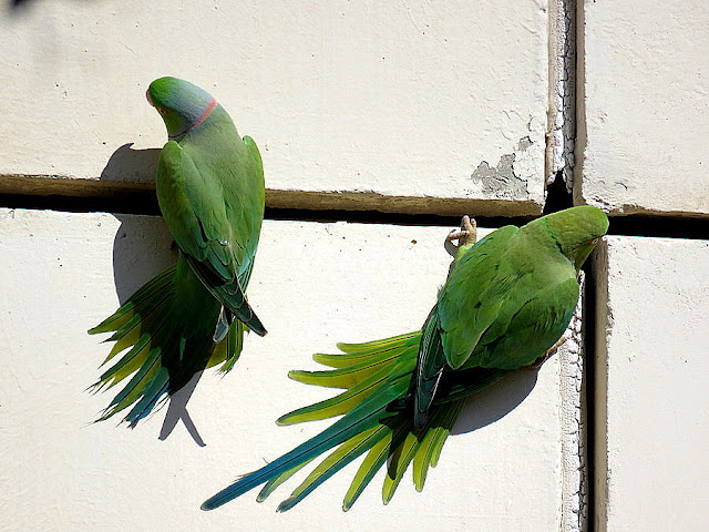 Обратила внимание, что попугаи хорошо выглядят, на воле. Волосок к волоску, перышко к перышку, прилизанные, расчесанные, чистые, холеные. А в клетке они совсем не такие. (
