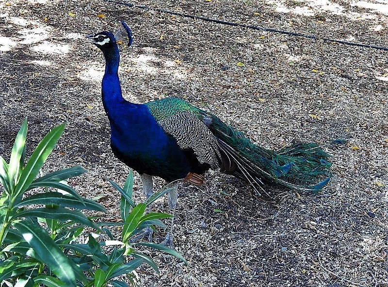 По двору и в саду гуляют и отдыхают павлины