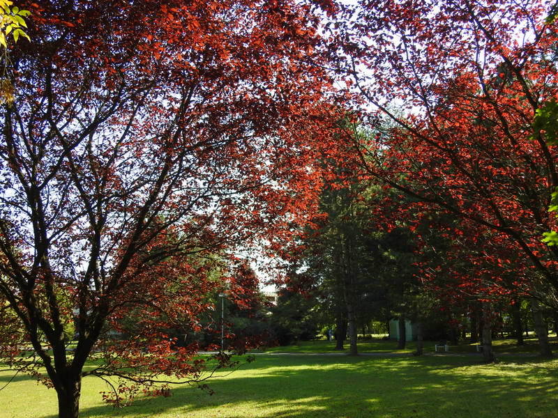 К сожалению, нет табличек с названиями деревьев и кустарников.