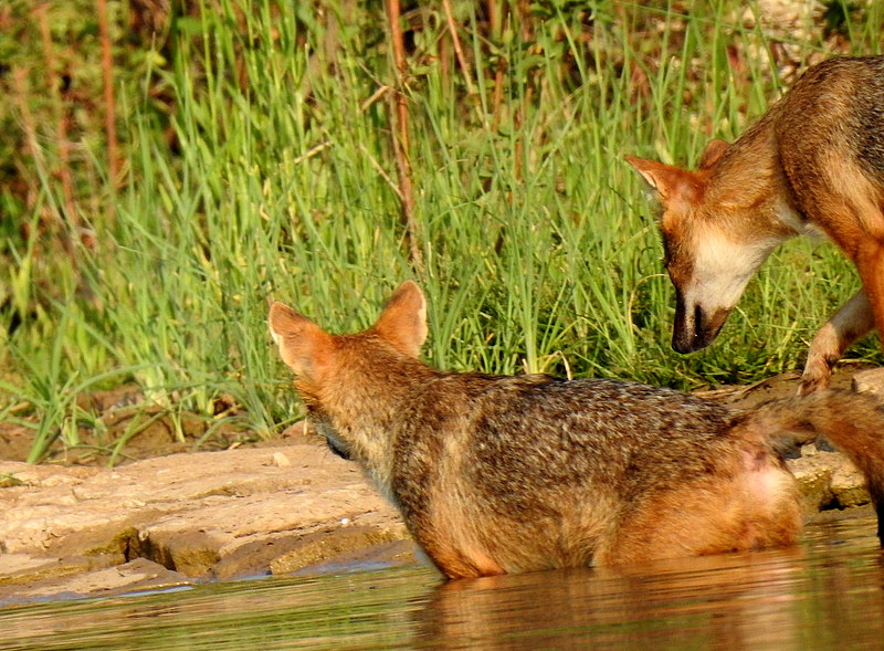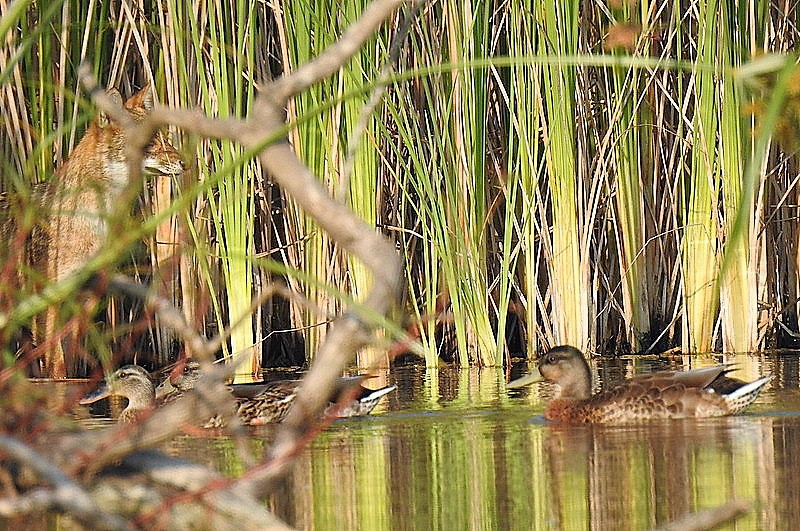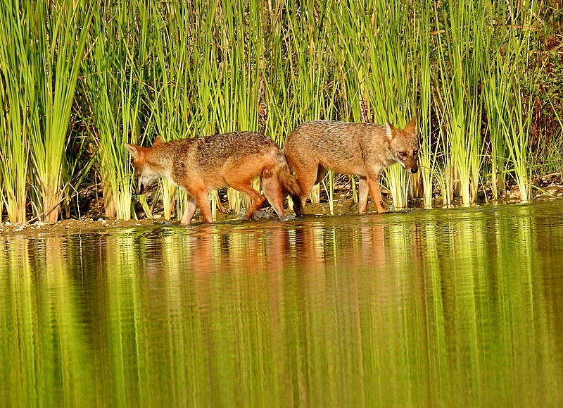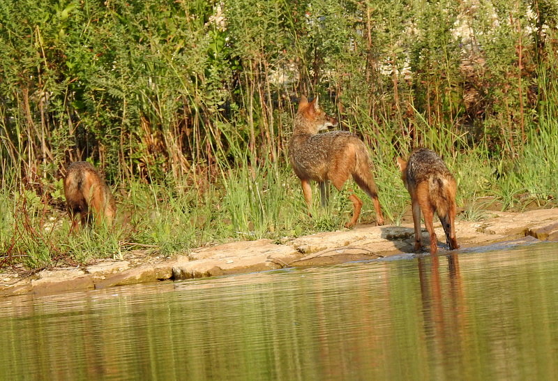 В парке, когда я "охотилась" на птиц с фотоаппаратом, охоту на уток вели три шакала.