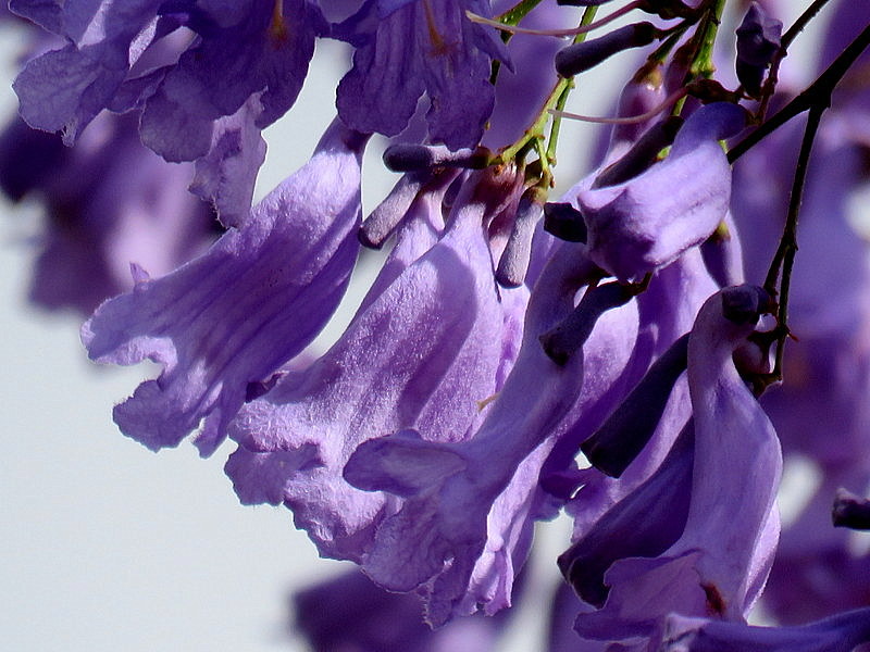May. 3rd, 2016 09:30 amЖакаранда мимозолистная (Jacaranda mimosifolia) - так называется это дерево, дарящее при цветении красоту сиреневого облака из пышных колокольчиков. Цветущие деревья словно окутывают улицы прозрачной сизой дымкой, а под ногами выстилают фиолетовый ковер. Цветение жакаранды - волшебная пора!