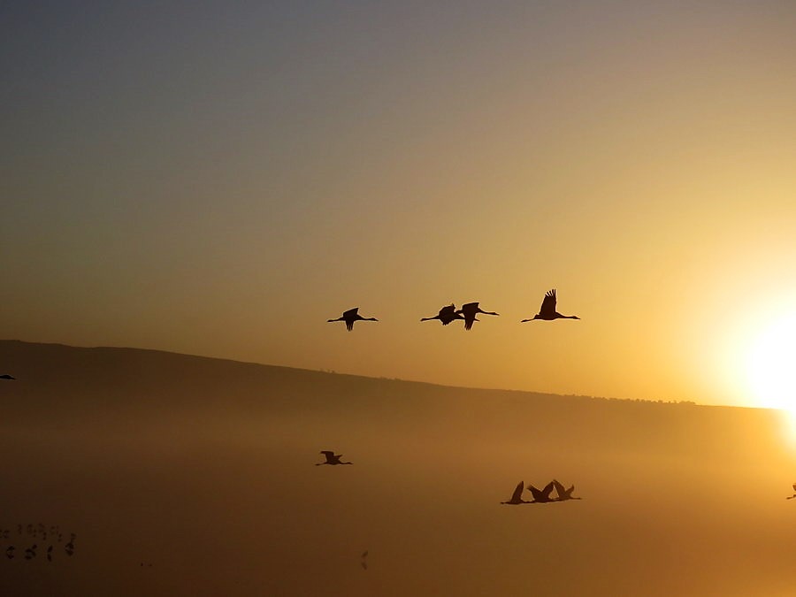 В эту раннюю стынь стоит приехать с тёплой компанией за сотни километров в заповедник Агмон а-Хула, прибежищу журавлей и остальных перелетных птиц, даже ради того, чтобы убедиться: у нас - множество единомышленников...