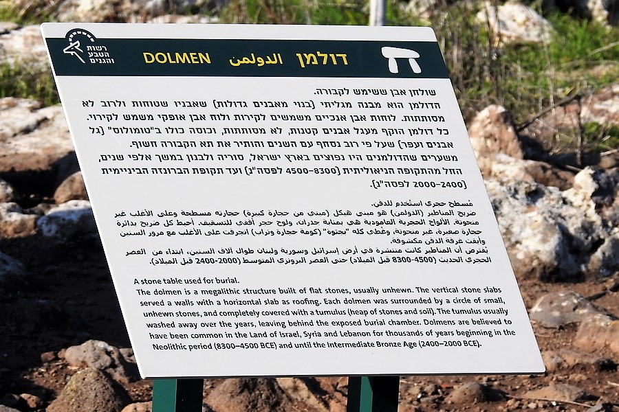 Дольмен - один из типов мегалитических сооружений. Количество дольменов на Голанах исчисляется сотнями.
