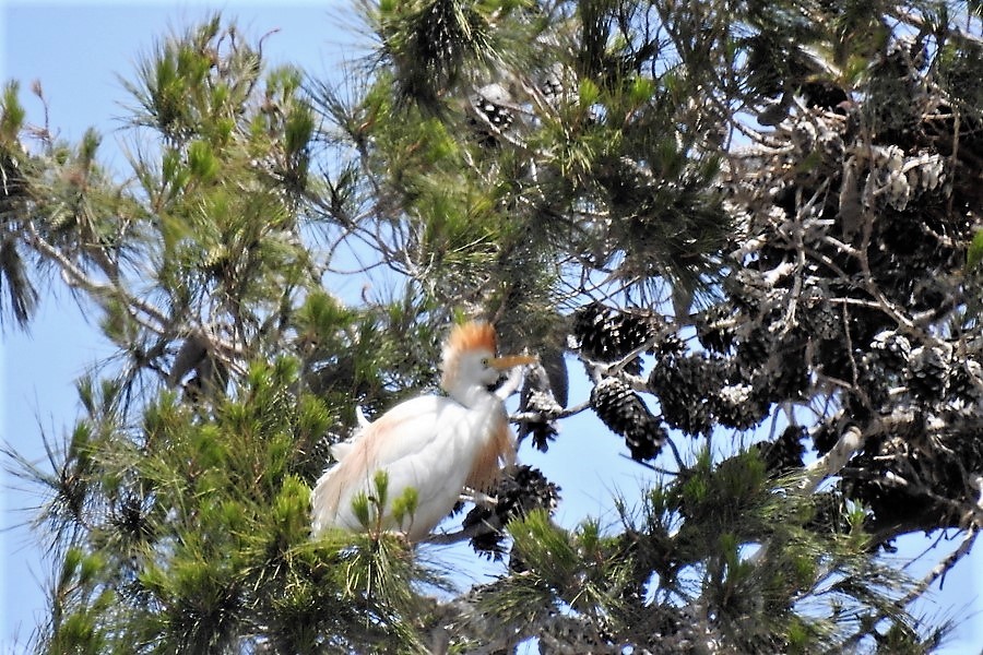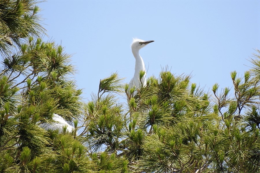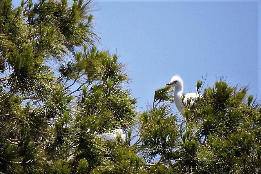 Высоченная сосна с густой кроной привлекла птичьим гомоном. Некоторые из белых (и не только) комочков высовывались из-под сосновых лап.