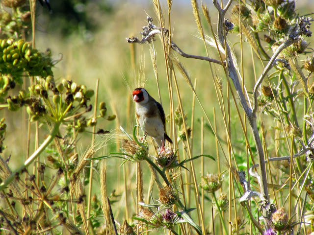Но вот засыхающую траву оживил своим присутствием щегол