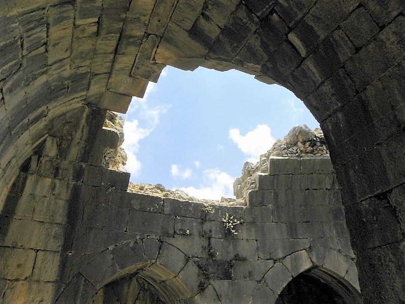 Взору путешественников открываются развалины крепости крестоносцев, изрядно перестроенной в середине ХIII века мамлюками (мамелюками).