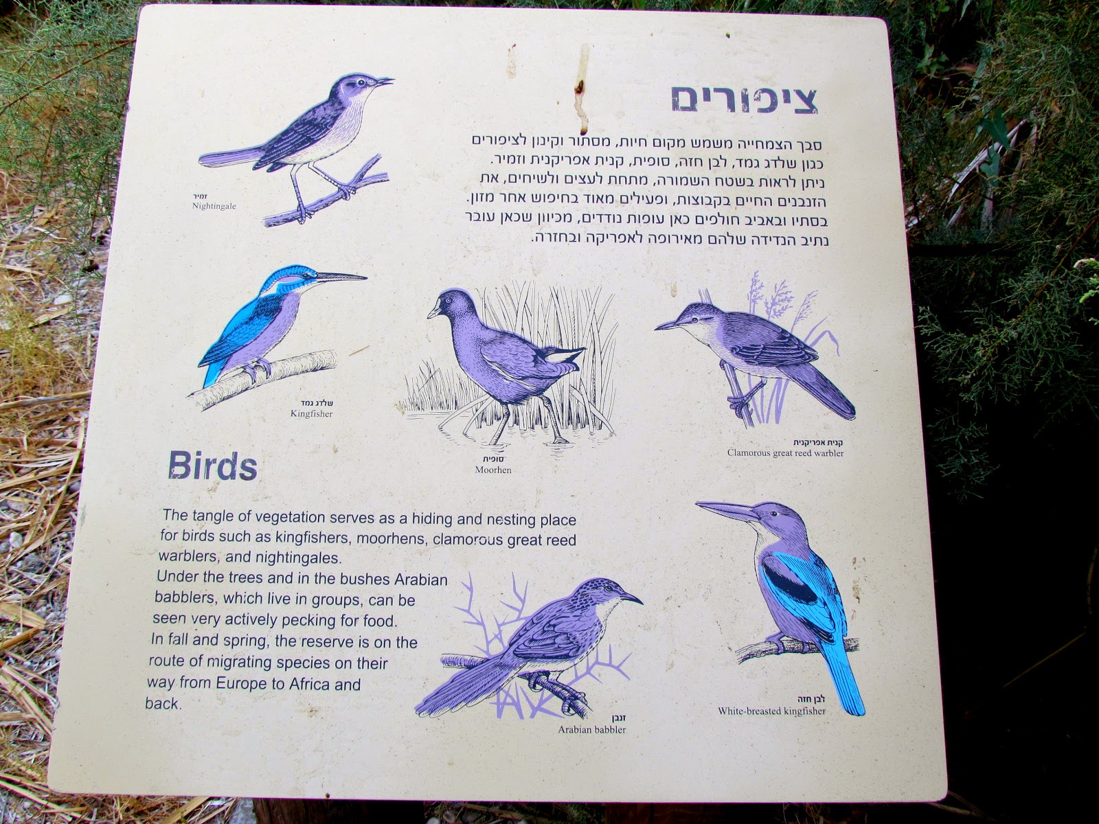Плакаты отмечают разнообразие птиц. В сезон птичьих миграций на территории заповедника садятся на отдых до полумиллиарда перелетных птиц. Птичьи голоса слышны, но самих птиц не видно.