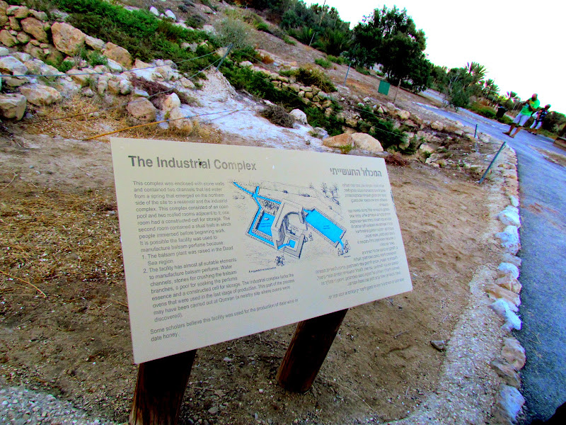 Особый интерес представляет индустриальный комплекс. Ученые и историки утверждают, что здесь производилось одно из самых дорогих благовоний древнего мира. Его делали на основе масла некоего плода по названию афарсемон, который можно назвать таинственным: никто из современников его не видел. За масло этих плодов шла борьба между царем Иудеи Иродом и египетской царицей Клеопатрой. Способ его производства держали в строгом секрете, изготовителей - под страхом смерти. Так что рецепт тоже не дошел до наших дней. А вот название афарсемон дошло: сегодня так на иврите называется хурма.