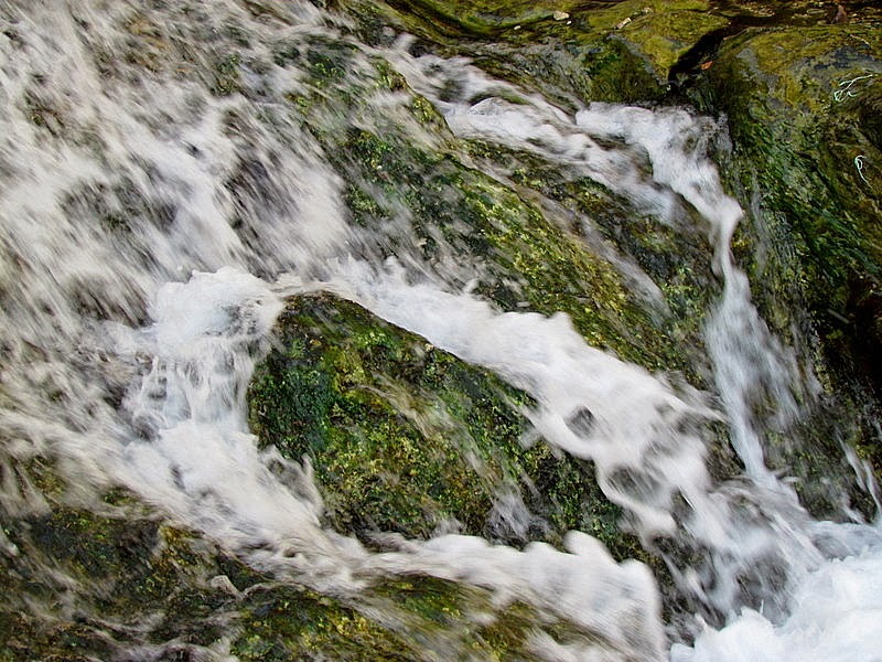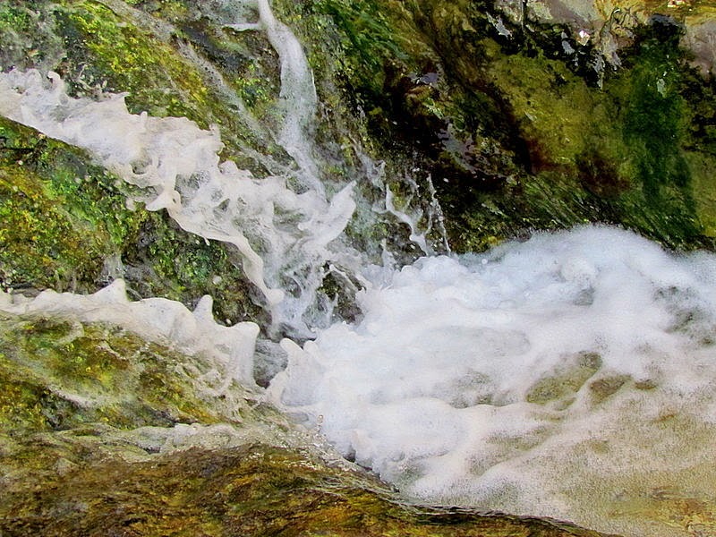 А вот первая большая вода. Здесь следует отметить, что камни покрытые мхом, очень-очень скользкие. Их надо обходить стороной. Здесь, к счастью, весьма удачно, принял "купель" один из наших.