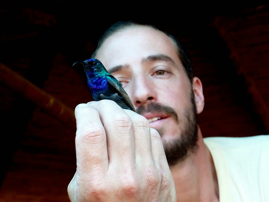 На иврите эта птичка называется צוֹפִית «цуфит», от слова «цуф» (нектар), или יוֹנֵק הַדבַש «йонек а-дваш» (медосос, на английском «sunbird» – солнечная птица. Но в книге регистрации все названия птиц записываются на латыни. Так что это - Nectarinia Osea (Красноподмышечная нектарница, Палестинская нектарница, צופית בוהקת) — птица из семейства нектарницевых, отряда воробьинообразных, обитающая на Ближнем Востоке и Центральной Африке. Длина тела 10—11 см, вес 8 граммов.